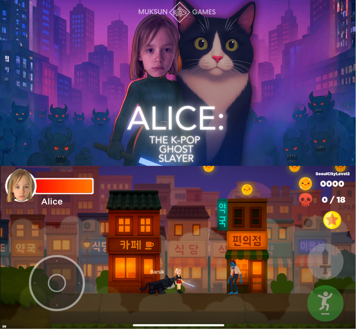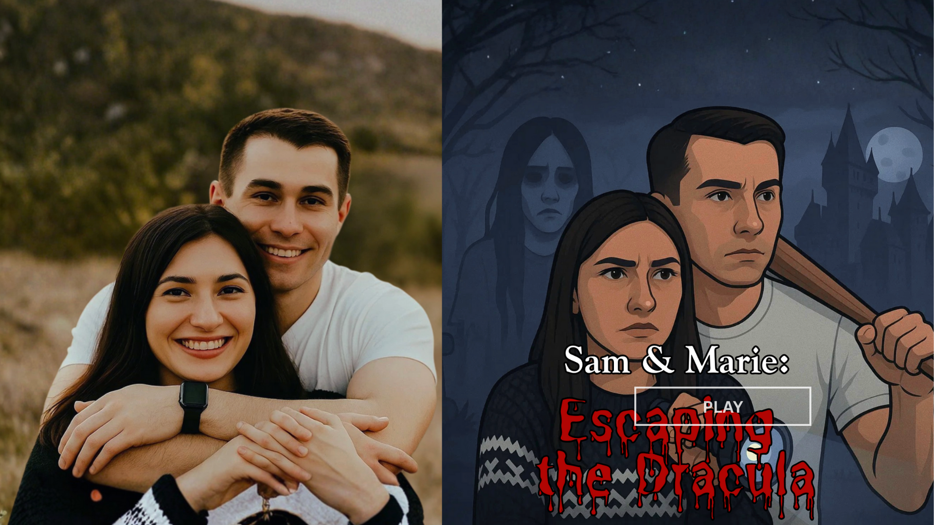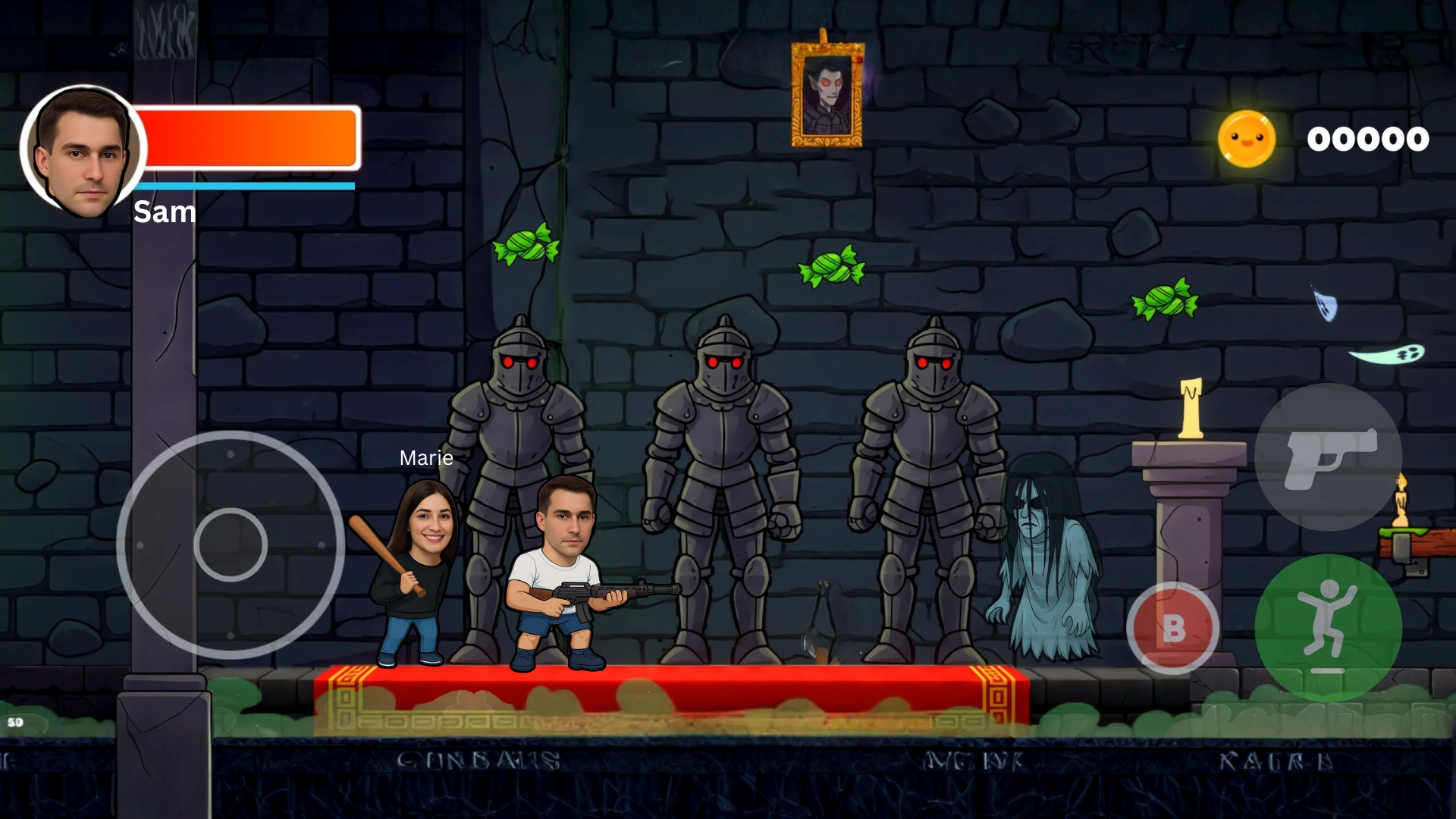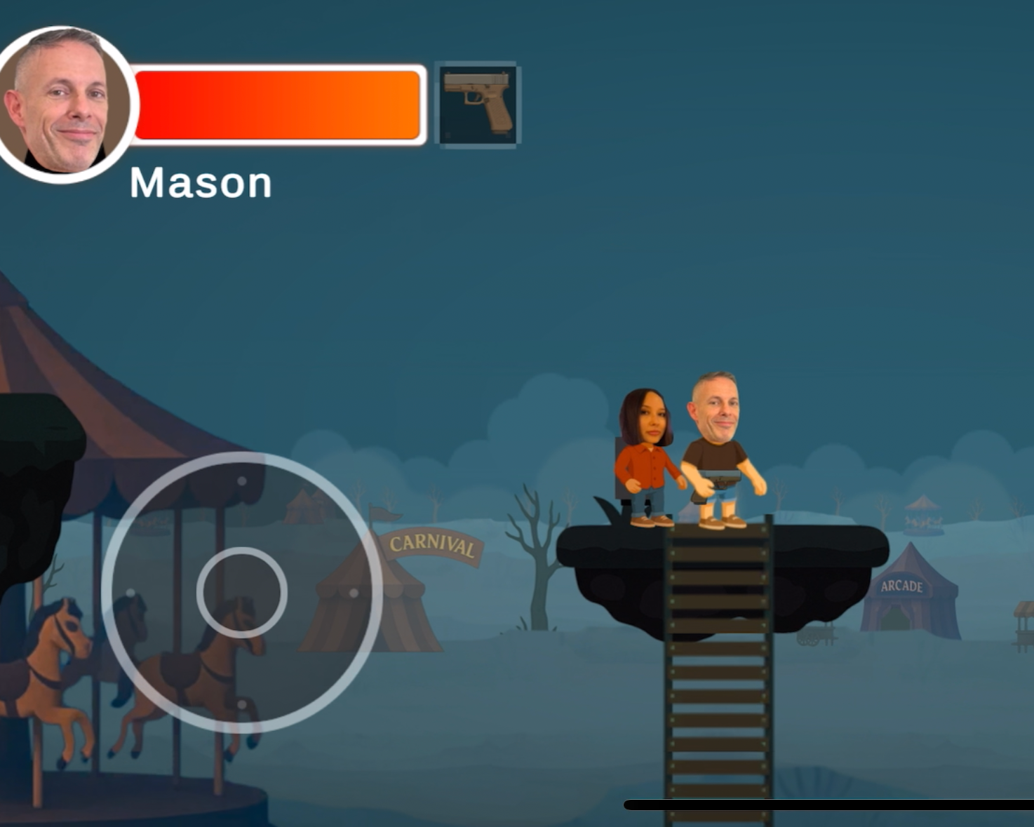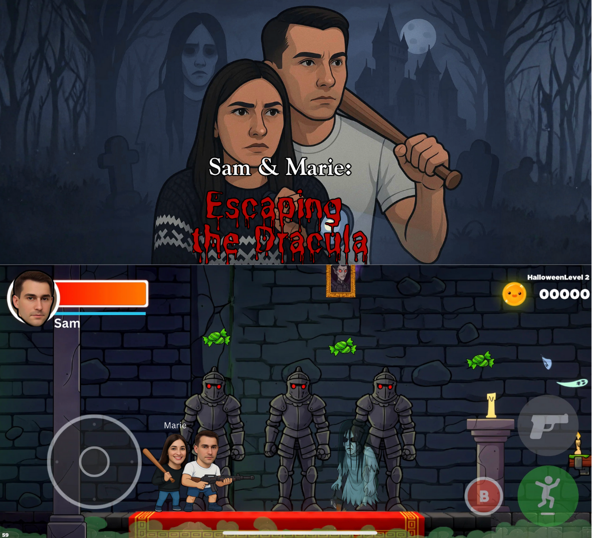 Custom 2D platformer with 3 levels, your loved ones as characters in a game based on their story.